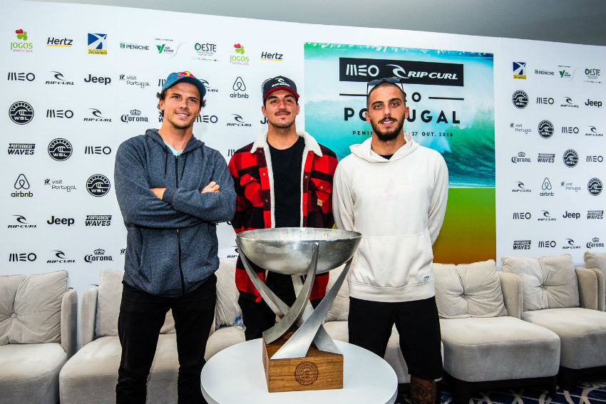 | Julian Wilson, Gabriel Medina e Filipe Toledo de olho na taça. Foto: WSL |