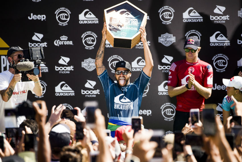 | Ítalo Ferreira vence e larga na frente na corrida pelo título mundial. Foto: @wsl |