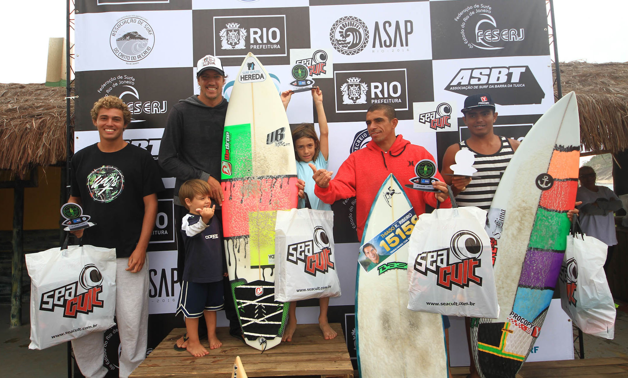 Já na Mirim, outro surfista do Arpoador levantou o caneco. Anderson Pikachu, morador do morro do Cantagalo, venceu Cauã Costa, Daniel Templar e Sany Santos, subindo no degrau mais alto do pódio. Pikachu terminou o evento com a melhor média da competição: 17.25 pontos dos 20 possíveis (ele fez um 8,56 e um 8,75 na primeira semifinal da categoria).
