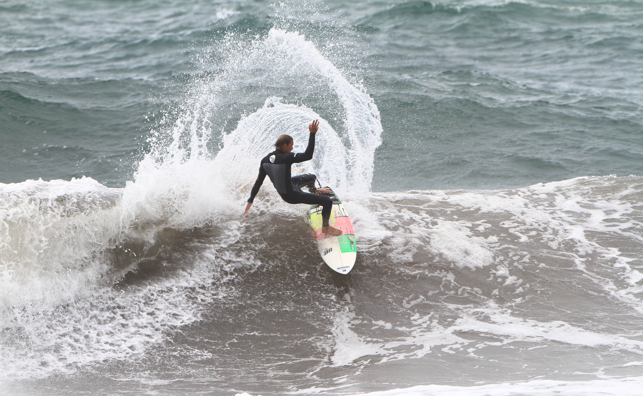 O mar baixou em comparação às disputas do sábado e ondas de 1 metro de altura foram o cenário deste domingo nublado de decisões na água. A primeira final a ser definida foi da categoria Open, comandada pelo baiano Angelo Hereda. Radicado no Rio há mais de 10 anos, Hereda desbancou o surfista da nova geração de ondas grandes, local do Recreio dos Bandeirantes, Pedro Ribeiro.