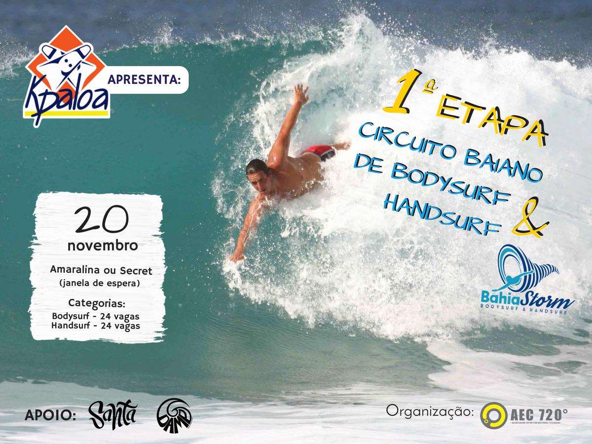 Acontece no dia 20 de novembro, a primeira etapa do Circuito Baiano de Bodysurf & Handsurf, na praia da Amaralina, mas dependendo das condições do mar, poderá ser alterado o local do evento para Stella Maris.