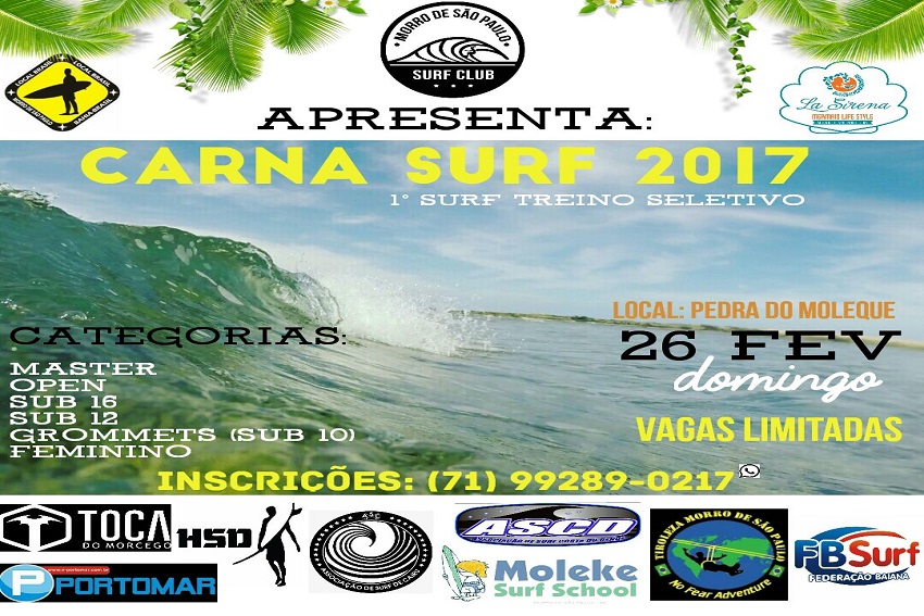 No próximo domingo (26/2) acontece o primeiro treino seletivo Carna Surf, no pico da Pedra do Moleque, em Morro de São Paulo.