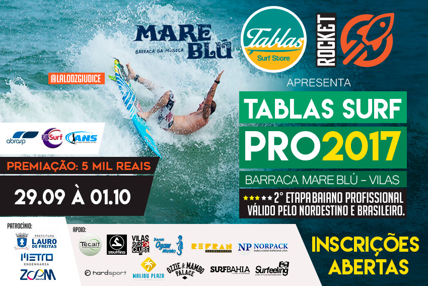 Mais de 200 atletas são aguardados para o Rocket apresenta Tablas Surf Pro 2017, segunda etapa do Circuito Estadual de Surf Profissional, que acontecerá entre os dias 29 de setembro a 1 de outubro, na encantadora praia de Búzios, em Vilas do Atlântico. Atletas de todo Nordeste devem comparecer a este super evento, que leva a chancela da Associação Brasileira de Surf Profissional (ABRASP) e Associação Nordestina de Surf (ANS).