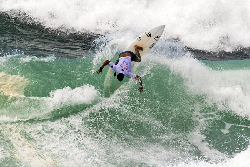 Em ondas de 1 metro e séries pouco maiores, com formação prejudicada pelo vento, Fernandez voltou a usar as suas manobras agressivas para seguir adiante.