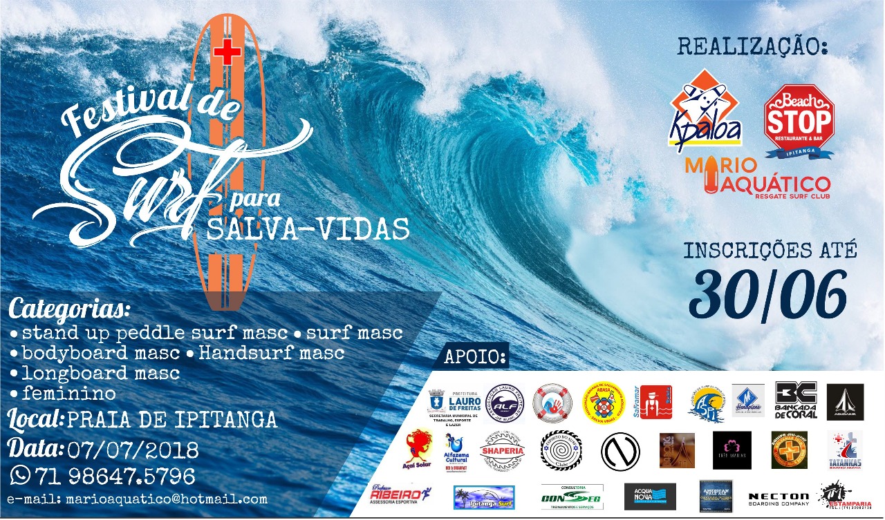 No próximo dia 7 de julho, a praia de Ipitanga recebe o Festival de Surf para Salva-Vidas.