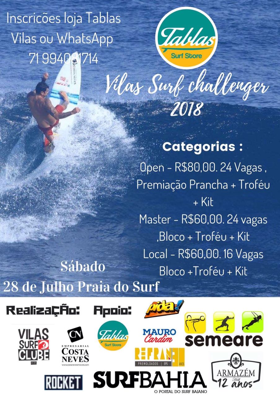 Em clima de confraternização, no próximo dia 28 de julho, na praia do Surf, em Vilas do Atlântico, o Vilas Surf Clube promoverá pelo segundo ano consecutivo o Vilas Surf Challenger, evento que busca resgatar todas as gerações de surf de Vilas do Atlântico em um único dia.