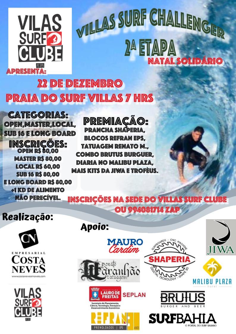 No próximo dia 22 de dezembro, a praia do Surf, em Villas do Atlântico, recebe a segunda etapa do Villas Surf Challenger / Natal Solidário, apresentada pelo Villas Surf Clube.