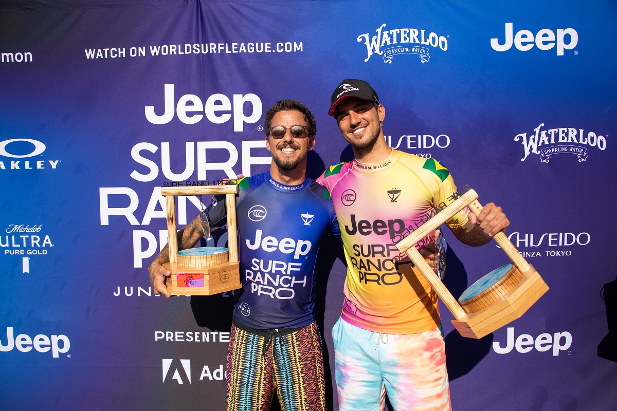 Os brasileiros continuam reinando na piscina de ondas criada por Kelly Slater no deserto da Califórnia, com Gabriel Medina e Filipe Toledo decidindo o título em todas as três edições desta etapa do World Surf League Championship Tour. Mas, dessa vez Filipe conseguiu quebrar a invencibilidade de Medina e é o novo campeão do Jeep Surf Ranch Pro apresentado pela Adobe. Com a vitória, o Brasil volta a dominar o topo do ranking mundial, com Medina em primeiro, Italo Ferreira em segundo e Filipe Toledo voltando ao terceiro lugar na classificação geral das seis etapas completadas no domingo emocionante na Califórnia.