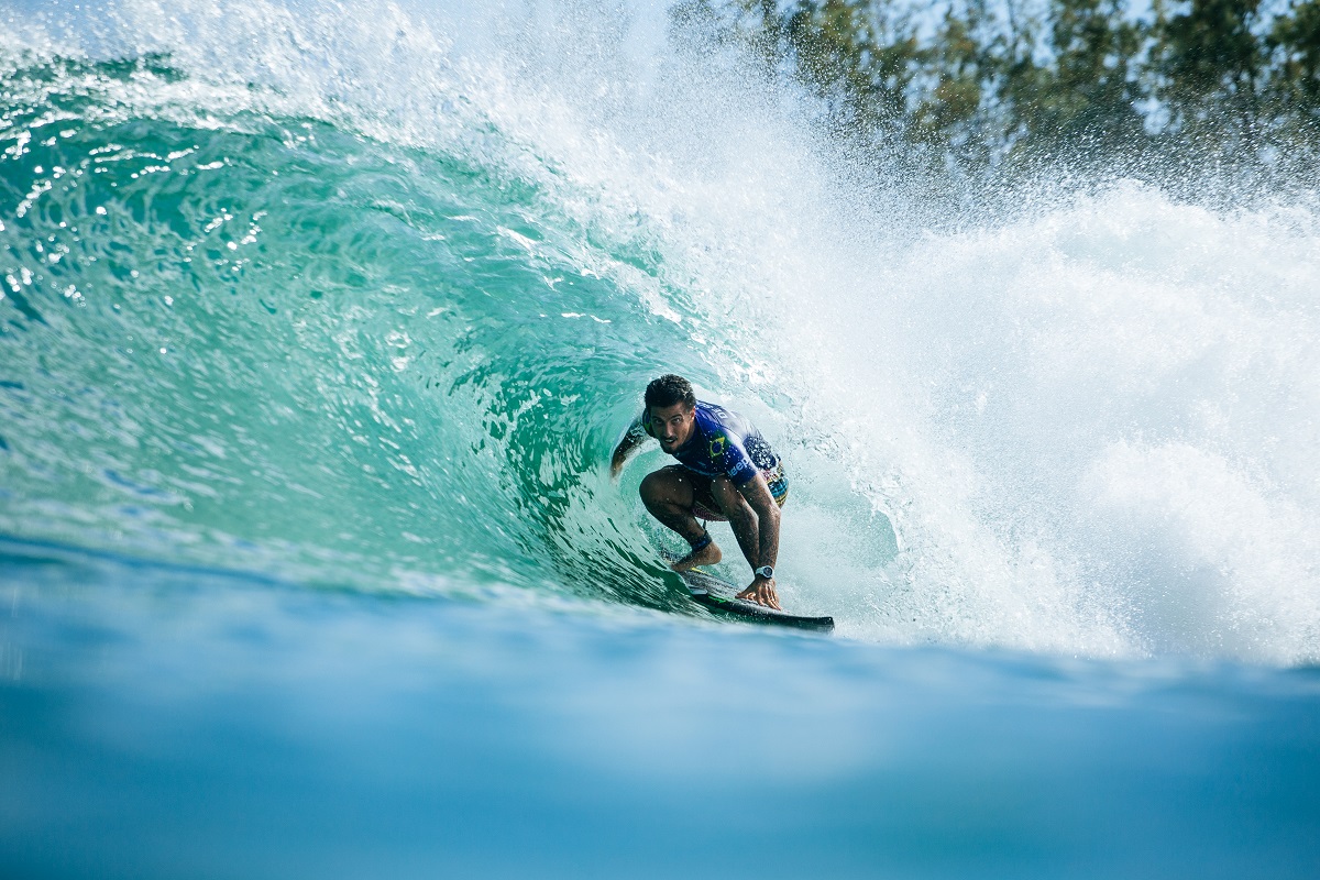 Mas, Yago Dora deu um show. Primeiro aumentou a nota da direita de 5,87 para 6,50. Depois, massacrou a esquerda de uma forma impressionante, manobrando forte, entubando e voando nos aéreos para receber a maior nota do evento, 9,50. Com ela, foi direto para o terceiro lugar no Qualifying com 16,00 pontos, só ficando abaixo do Gabriel Medina com 17,00 e do Filipe Toledo com 17,80. Tudo foi zerado para os oito finalistas, que na semifinal voltaram a surfar duas direitas e duas esquerdas, em duas entradas na piscina.