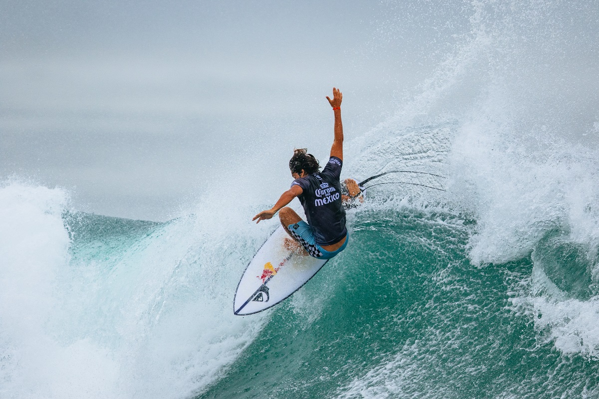 SEMIFINAIS – O último dia do Corona Open Mexico apresentado pela Quiksilver foi iniciado pelas semifinais e Deivid Silva surfou a primeira onda da sexta-feira decisiva. O italiano Leonardo Fioravanti demorou cerca de 15 minutos para pegar a primeira dele e escolheu bem, uma onda lisa para atacar forte de frontside, sempre trabalhando com a borda da prancha nas partes críticas. Ele ganhou 5,33 e Deivid logo responde com 5,73, mostrando a mesma potência do backside vertical que eliminou o bicampeão mundial e número 1 do CT 2021, Gabriel Medina, nas quartas de final.