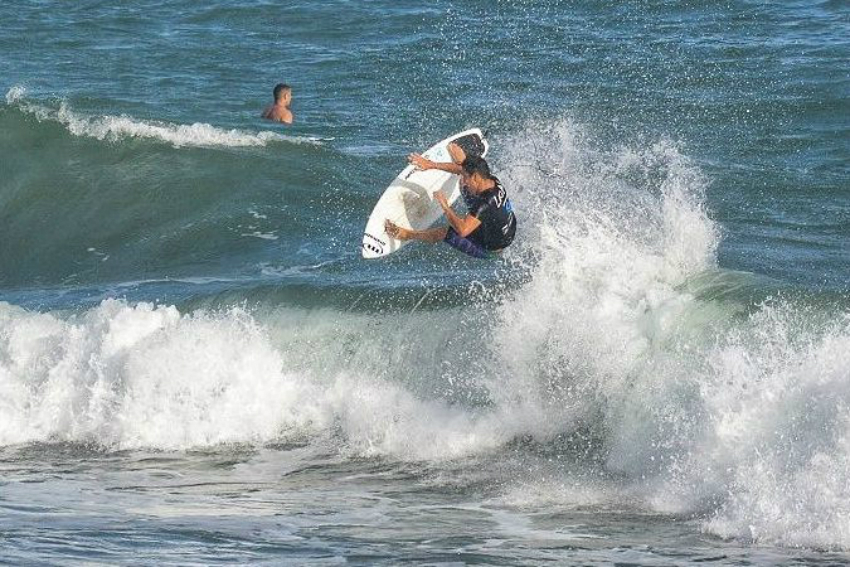 Cria da praia do Barravento, em Salvador, o freesurfer Felipe, de 21 anos, chama atenção pelo seu estilo irreverente em cima da prancha, sempre jogando muita água durante as sessões.
