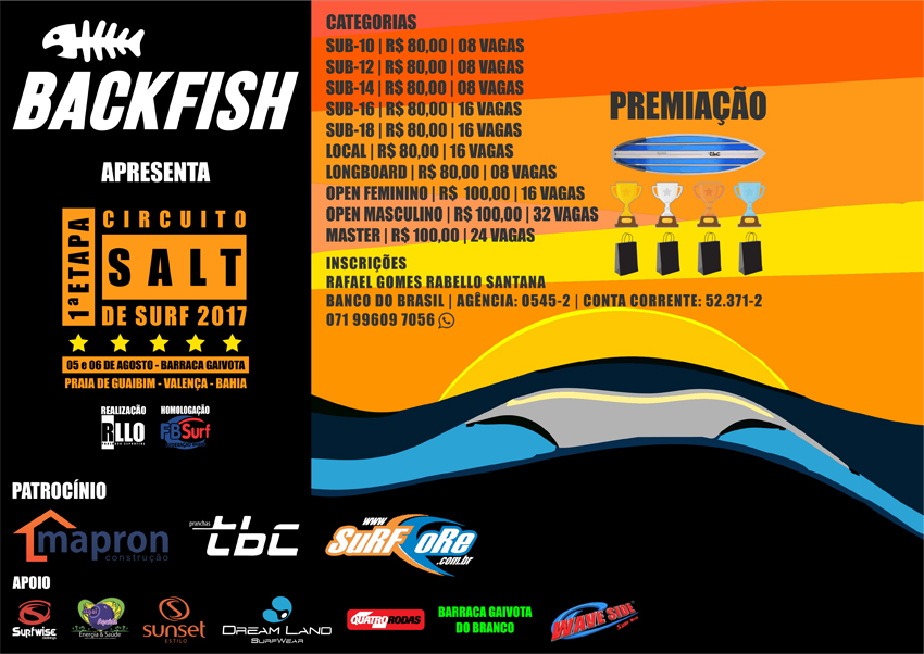 Nos próximos dias 5 e 6 de agosto, a Praia de Guaibim, pertencente ao município de Valença (BA), recebe a primeira etapa do Circuito Salt de Surf 2017, apresentado pela Backfish.