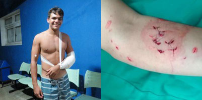 Ricardo foi medicado, levou 15 pontos no braço e teve alta.