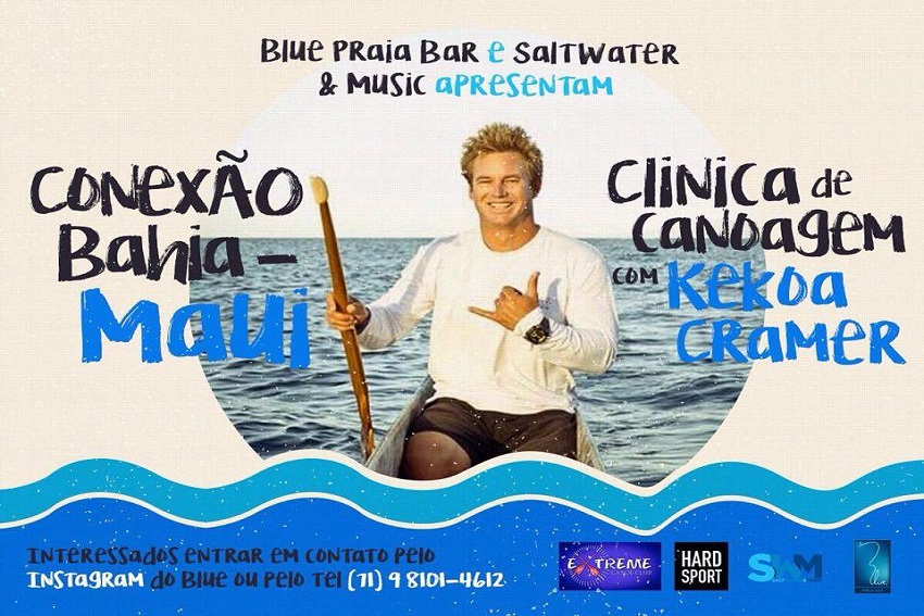 O Blue Praia Bar, em parceria com a SaltWater & Music, Extreme Canoe Club e apoio da Hardsport apresentam Conexão Bahia - Maui, Clínica de Canoagem com Kekoa Cramer.