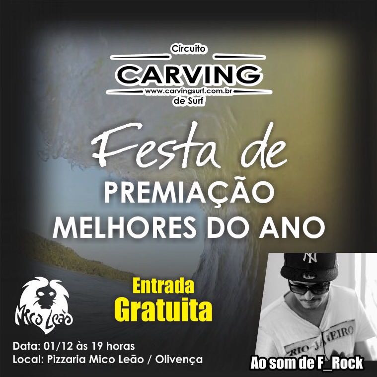 No próximo dia primeiro de dezembro, às 19 horas, o Circuito Carving de Surf promove a festa de premiação dos melhores do ano.