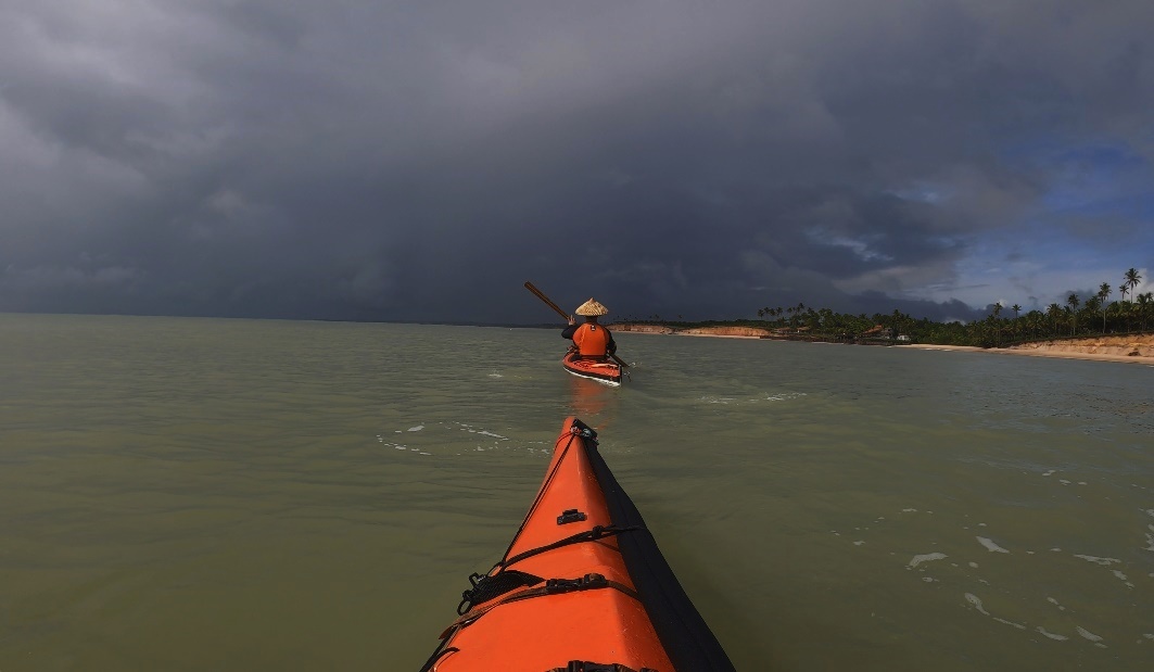 Ventos quilométricos que chegaram a 100 km/h e muita chuva tornaram a situação da região insustentável. Estado de Calamidade Pública em quase 30 municípios da região e nós ali, em meio a tudo isso, com nossos caiaques e o sonho de seguir adiante, enfrentando condições climáticas nunca vistas por nós nesse período do ano.