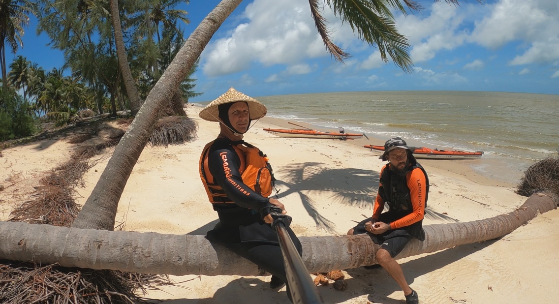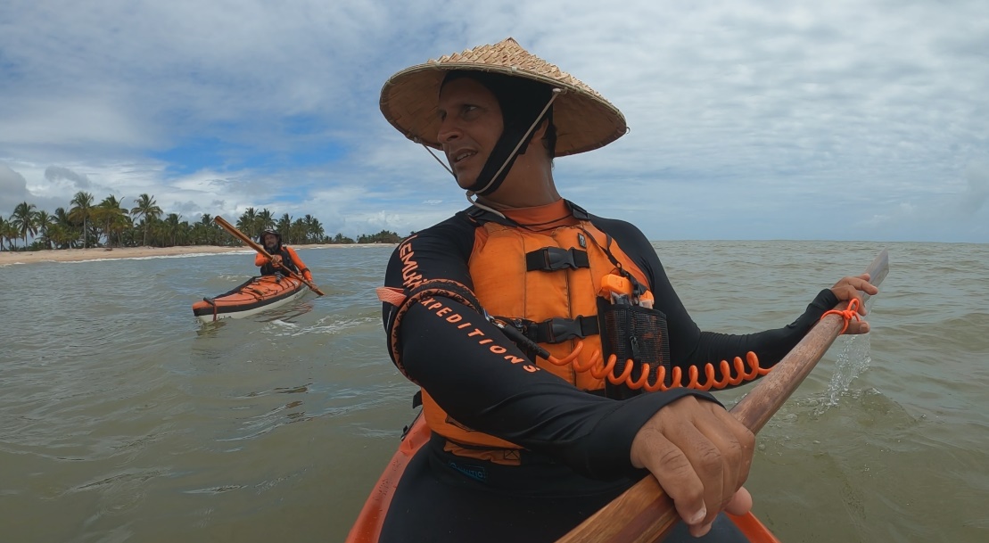 Do mesmo jeito que veio, subitamente no dia 11 a tempestade se foi e seguimos fortes até Alcobaça. Timidamente o sol saiu e no dia seguinte, 12 de dezembro, fizemos uma linda chegada pela Ponta da Baleia, a Barra de Caravelas, com praias e coqueirais de tirar o fôlego. No dia seguinte remamos para Nova Viçosa onde fizemos muitos amigos queridos, remadores da região. Hoje, dia 13 de dezembro, finalizo esse terceiro diário de bordo da expedição sentado embaixo de uma amendoeira da pacata cidade de Mucuri, encerrando assim a etapa 3 da Expedição Remando em Preservação.