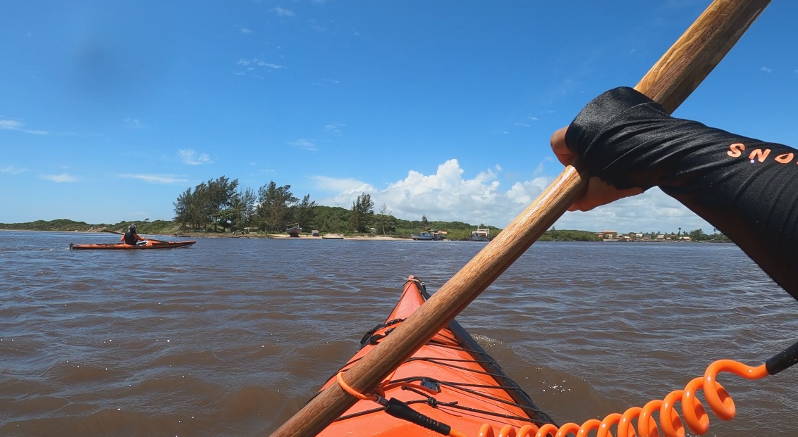 O dia da saída de Barra Nova amanheceu diferente. O vento havia mudado para nordeste, mas com muita força varria o rio e o mar com uma intensidade que chegava a 30 nós. O tempo continuava chuvoso e fechado e minha sensação era que algo não estava legal. Saímos pelo rio e quando chegamos à boca da barra vimos grandes ondas rompendo e uma arrebentação que quebrava muito longe. Corajosamente remamos forte adentrando quando fui acometido por uma grande onda que me fez capotar.